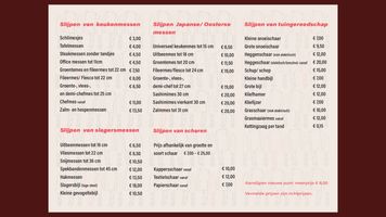 Bekijk onze tarieven voor het slijpen van messen, scharen en gereedschap, snel en vakkundig uitgevoerd.